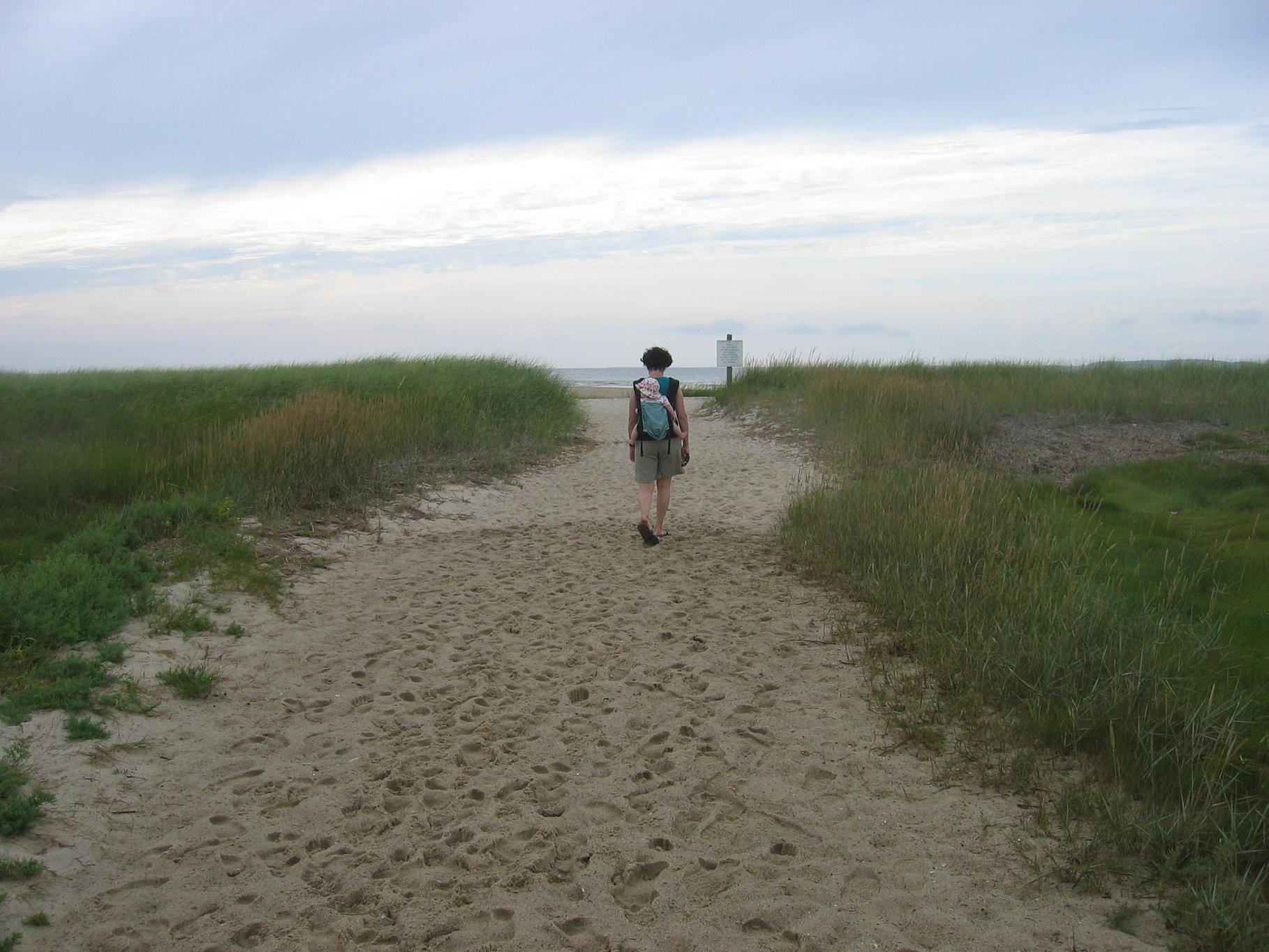 We went to Cape Cod over the weekend, to Wellfleet just for one night. We mostly escaped the effects of Hurricane Bill, since we went to the beach on the inner bay side of the Cape on Saturday. The water was pretty calm and warm and very Charlotte-friendly.