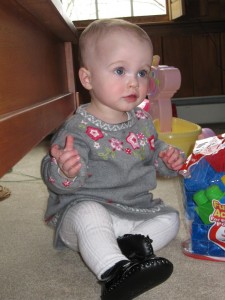Other than some version of “Daddy” or “Dad,” Charlotte’s first word was “mop” the other night when Brian took the mop out. She said it a few times in a row, with varying degrees of accuracy.