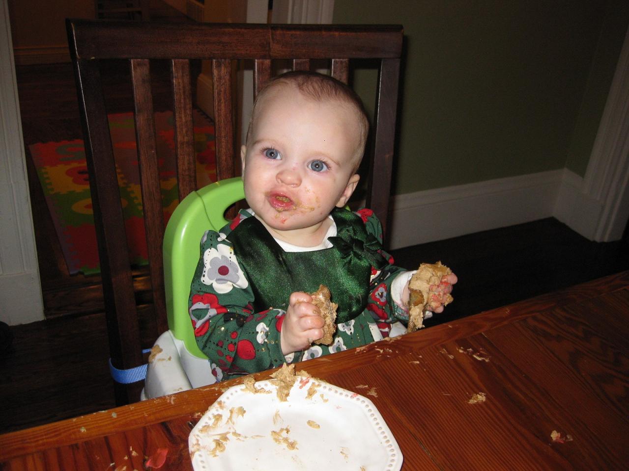And she loved her first cake. We got her a maple cake with maple frosting. She ate an entire piece and made a giant mess.
