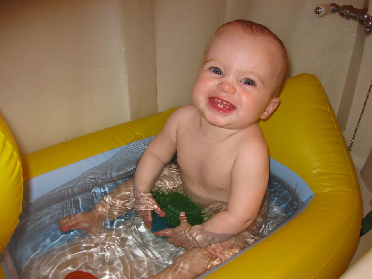 We think Charlotte may be practicing for the gymnastics floor exercise at the Olympics. According to Brian (who does bath time every night), this is a regular ritual before her bath.