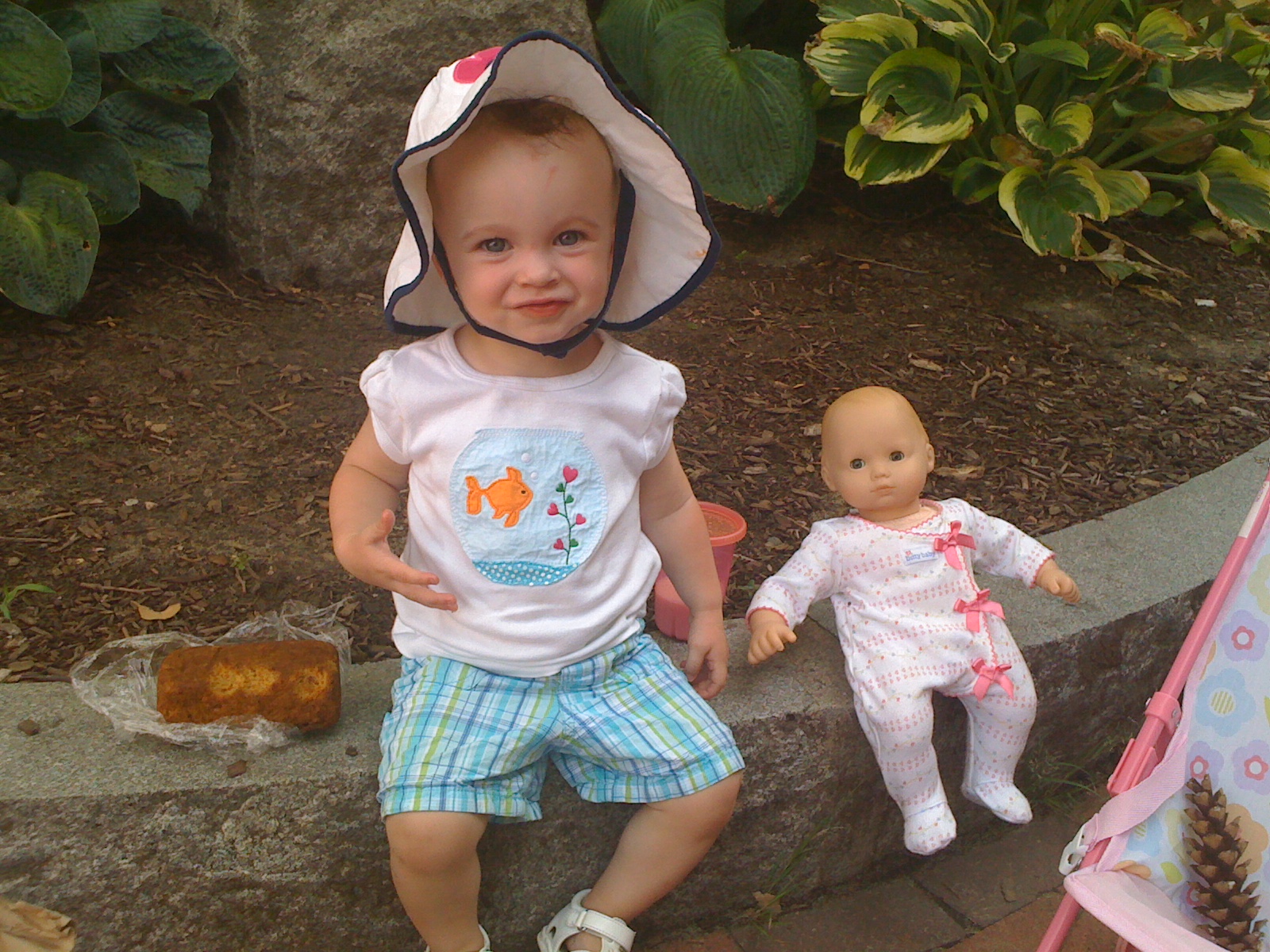 Charlotte helped my mom weed their yard over the weekend. She was very intent on helping carry around the box to put the weeds in, and she said “Weed! Weed!” while she was pulling up weeds.